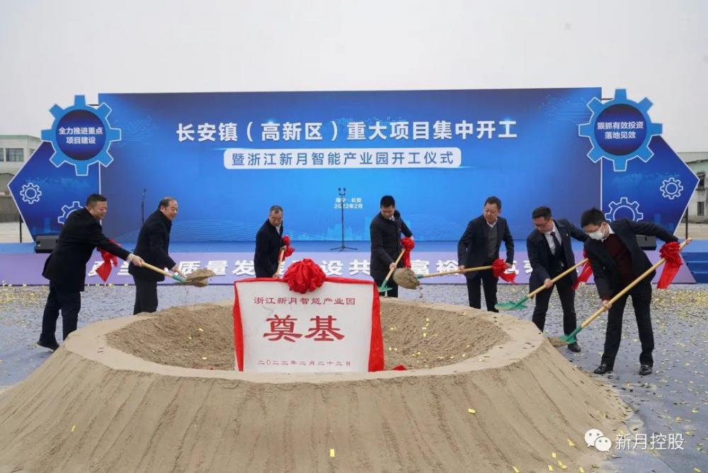 2月22日上午8点58分,海宁市长安区(高新镇)重大项目暨浙江新月智能产业园开工奠基仪式在新月智能产业园隆重举行。海宁市人大常委会主任姚敏忠,市委常委、长安镇党委书记、高新区党工委书记马明浩,海宁市人大常委会副主任许建明,长安镇党委副书记、镇长、高新区党工委副书记宓舟丹,高新区党工委副书记、管委会主任周青锋,海宁市长安镇(高新区)有关领导,浙江新月控股集团有限公司董事长张炎惠,浙江新月智能产业园的代表、参建人员等出席了开工奠基仪式。